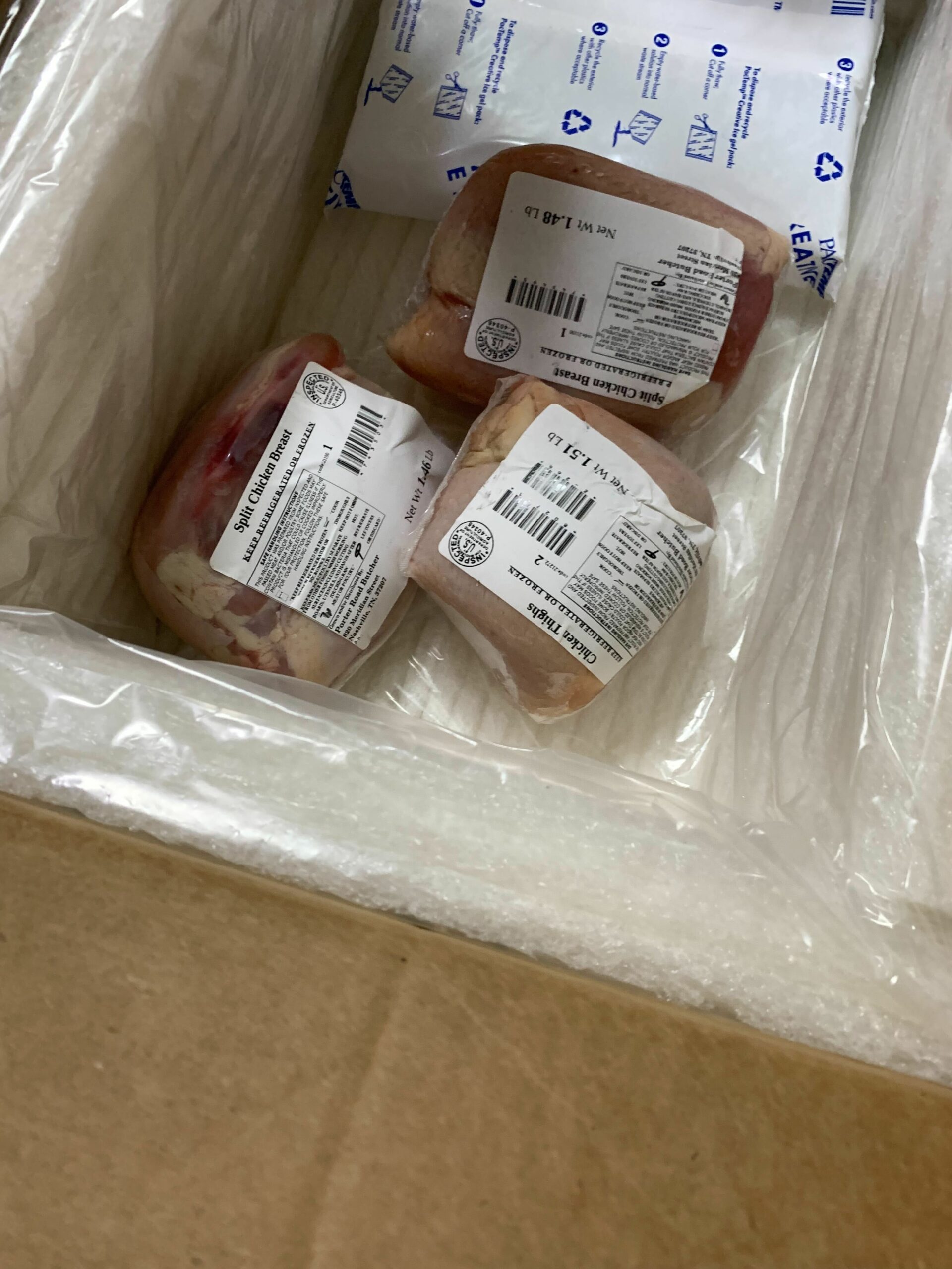 The site recommends that you either consume or freeze your meat soon after it arrives. For poultry, Porter Road suggests four days. Pork you should eat within five days, and beef should be good for nearly ten days. However, if any of your meat is ground, you need to freeze or eat it before the suggested time frame.
